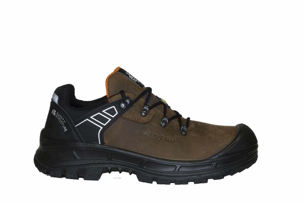 Atmungsaktives und wasserabweisendes vollnarbes Nubuk Leder. Abriebfester Vorderkappe. Abrieb- und reißfestes HiTech-Gewebe, im hinteren Bereich gepolstert für mehr Komfort. SAFETY STRUCTURE, externe Verstärkung im Fersenbereich für mehr Stabilität der Körperhaltung und Schutz mit Reflexstreifen für hohe Sichtbarkeit