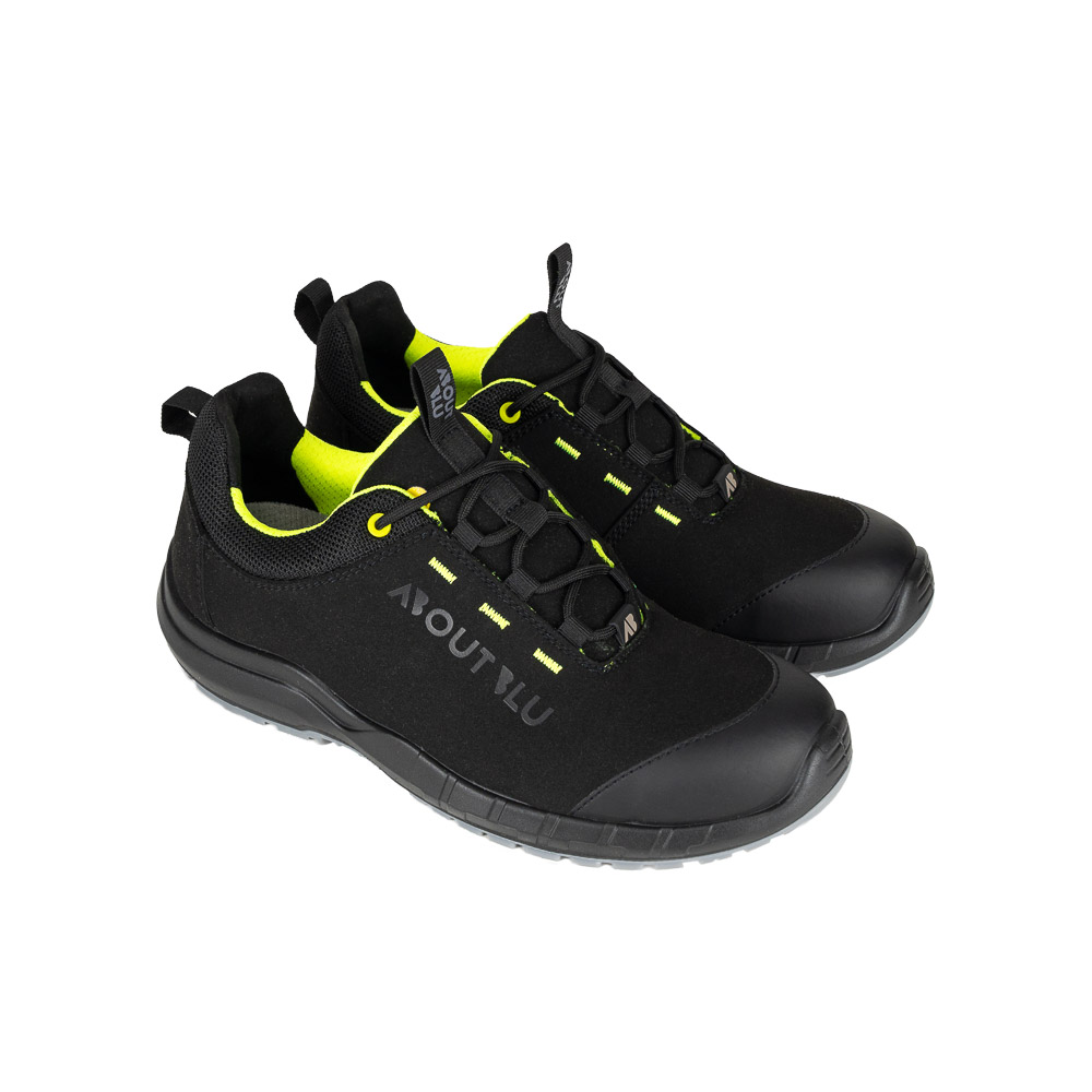 Suede-like microfiber, washable, elastic, breathable, resistant to tearing, traction and chemical agents; HI-TECH fabric resistant to abrasion and tears; TPU reinforcement on the toe cap