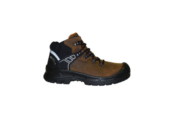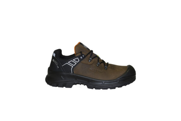 Pelle Fiore Nabuk idrorepellente e traspirante, con spunterbo. Tessuto HiTech resistente all'abrasione e allo strappo imbottito nel retro per un maggiore comfort. SAFETY STRUCTURE, rinforzo esterno nel retro tallone per una maggiore stabilità della postura e protezione con REFLEX alta visibilità